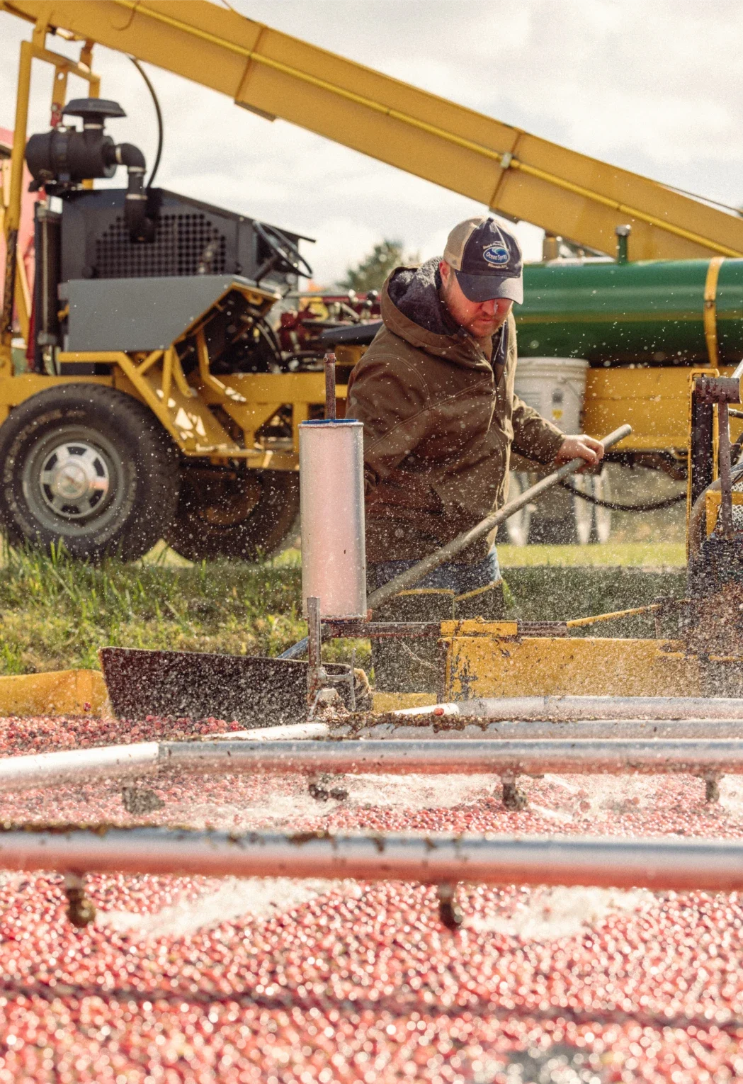 Two ways to do it. The first is dry harvest. Basically, a giant lawnmower combs the crimson berries from their vine. The other is wet harvest. Where we churn the bog water with the biggest “egg beaters” imaginable. The ripe berries rise to the surface. Thanks to tiny air pockets inside.